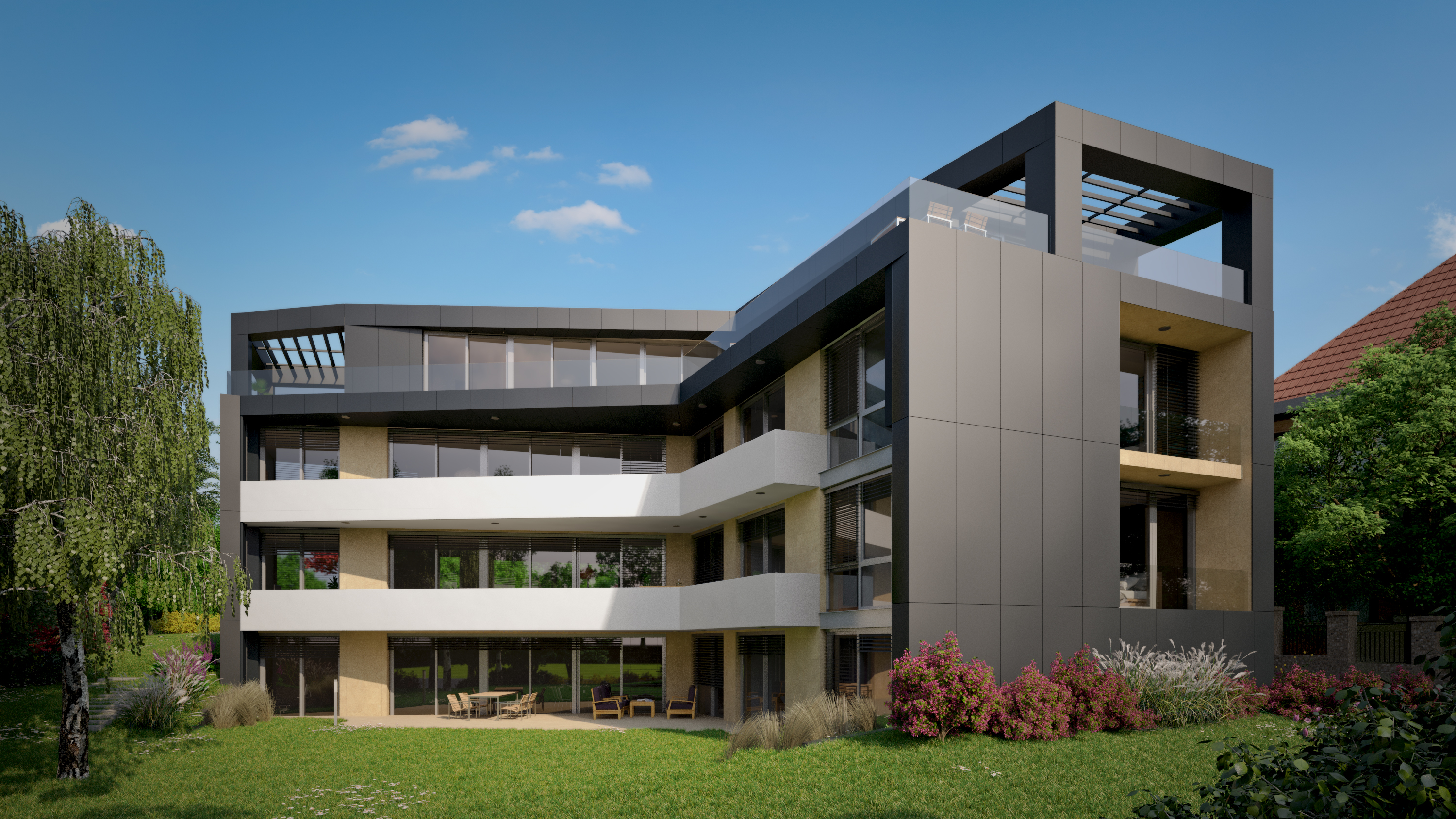 Teljes az összhang a presztízsértékkel rendelkező Rózsadombon található Szemlőhegy és a Tér Alkotó Tervező Stúdió Kft. építészei által oda tervezett elegáns négylakásos lakóépület között. Nagy-Miticzky Szabolcs és csapata az elegáns, határozott megjelenés és a monolit hatású tömeg eléréséhez a homlokzatra a természetes anyagokból készült EQUITONE szálcement burkolatot választotta.