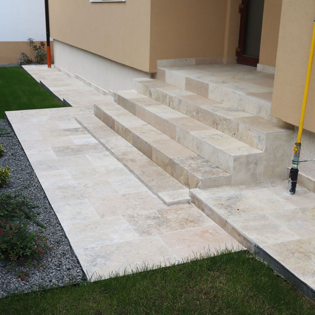 A Travertino kínálatában a travertin mészkő burkolatok széles skálája található. Ezek alkalmasak mind kül-, mind beltéri használatra padlóburkolatnak, párkányoknak, járófelületnek, lépcsőnek, terasznak, fedlapoknak és oldalfali díszburkolatnak egyaránt. A mészkő-travertin jelenleg az építőipar legkedveltebb anyaga, lágy tónusú színárnyalatai és könnyű faraghatósága, alakíthatósága miatt. Különböző modelleink inspiráló megoldásokat kínálnak a kortárs minimalista és mediterrán házakban is.