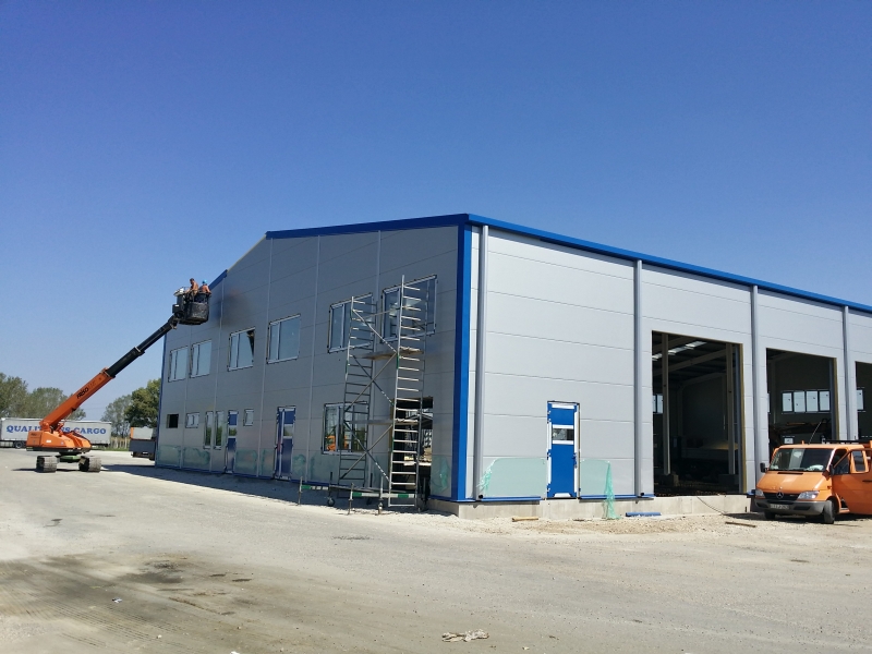 Magas minőségi követelményeket elégít ki, de egyszerűbb célt szolgál egy kisbéri építőanyag kereskedés raktárépülete. A tűzállósággal szemben támasztott követelmények a méreteiben is impozáns csarnok acélszerkezete esetén is lehetővé tették a vékonyfalú rácsos tartó alkalmazását. A komplett acélszerkezetek gyártása összesen 4 hetet vett igénybe. A 25 méter széles, 61 méter hosszú, és 5 méter magas, teljes egészében tűzi horganyzott szerkezeti elemekből álló acélszerkezet felépítése, a különleges szerelési technikának köszönhetően mindössze 8 napig tartott. A helyszínen minden csavarozással került a helyére, így hegesztésre sem volt szükség.