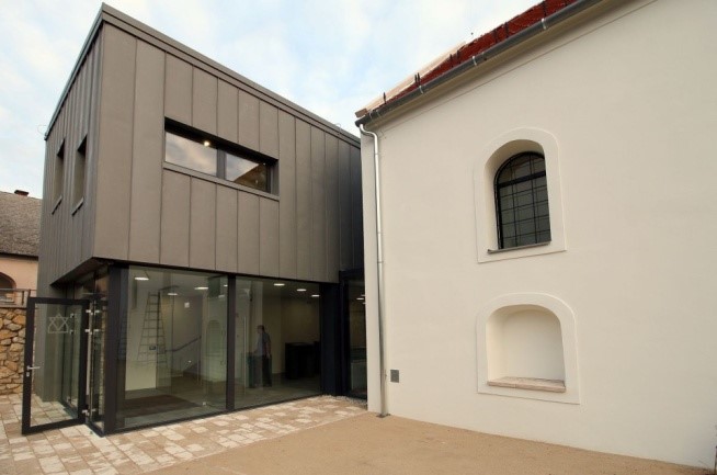 Az átalakítással a templom műemléki helyreállítására is sor került, az egykori templomtér rugalmas használatú közösségi térré vált, mely kívül-belül fehér színével a különböző felekezetek ökumenét testesíti meg. Az egykori funkcióra egy budapesti romos zsinagógából kimentett, helyreállított tóraszekrény emlékeztet, a tér padlóburkolatában pedig megjelenik az épület alapfalainak nyoma a korábbi korok emlékeként. A zsidó múlt múzeumát befogadó, antracit színű fémlemezzel burkolt új épületszárny határozott kontraszttal csatlakozik a felújított templom tömegéhez. A Dávid-csillagból származtatott háromszög-szerkesztésen alapuló, átgondolt belsőépítészeti, arculati és infografikai elemek végigvonulnak a különböző funkciójú tereken. Mint a díjátadón elhangzott: A visszafogott, érzékeny és a feladatot mélyen megértő építészeti alkotás jól mutatja, hogyan lehet egy látszólag kis léptékű beavatkozással jelentős városi és társadalmi többletértéket létrehozni.
