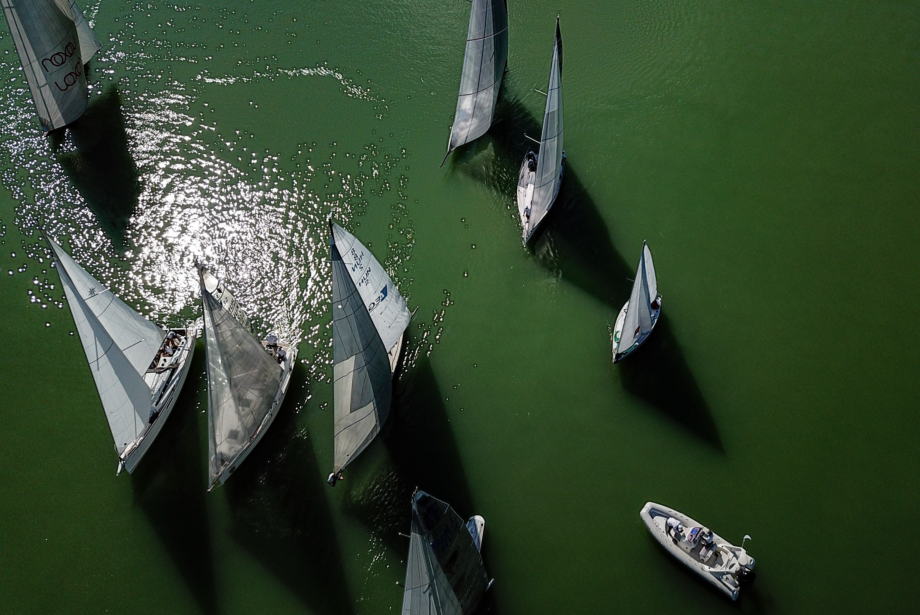 A legsikeresebben a Lillafüred, a Balaton egyik csodája rajtolt, már a kezdetben sikerült előnyt szereznie. Mi is egész ügyesen elindultunk egy csoportban a klasszikus hajórajjal. Nemere II., Irokéz, Capella, Pannónia, fantasztikus hajócsodák mindannyian. Szerencsére a csapatunkban több vérbeli versenyző is volt, az ő figyelmük nem lankadt, bizony én időnként átcsúsztam az esztétikai örömök területére, de hát ilyen komplex természeti és ember által alakított környezetben ez nem csoda. A különleges élményeket egyéb technikai csodák is fokozták, már régen figyelem az Asszók gyönyörű siklását, és erre most is volt módom. A verseny igazi fűszere, és mint később kiderült, abszolút meglepetése a Kishamis volt, ami szintén a közelünkben rajtolt, sőt hajónk csaknem összeölelkezett vele, ami azért nem lett volna nagy öröm, annyi lágyság nincs ezekben a csodákban.