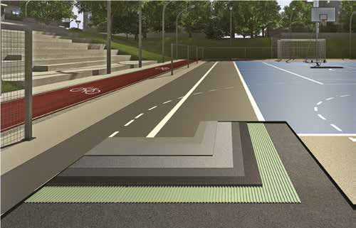 Ezek a rendszerek modern megoldást nyújtanak a hazánkban elterjedt iskolai vagy közterületeken lévő beton és aszfalt sportpályák felújítására és új pályák építésére.