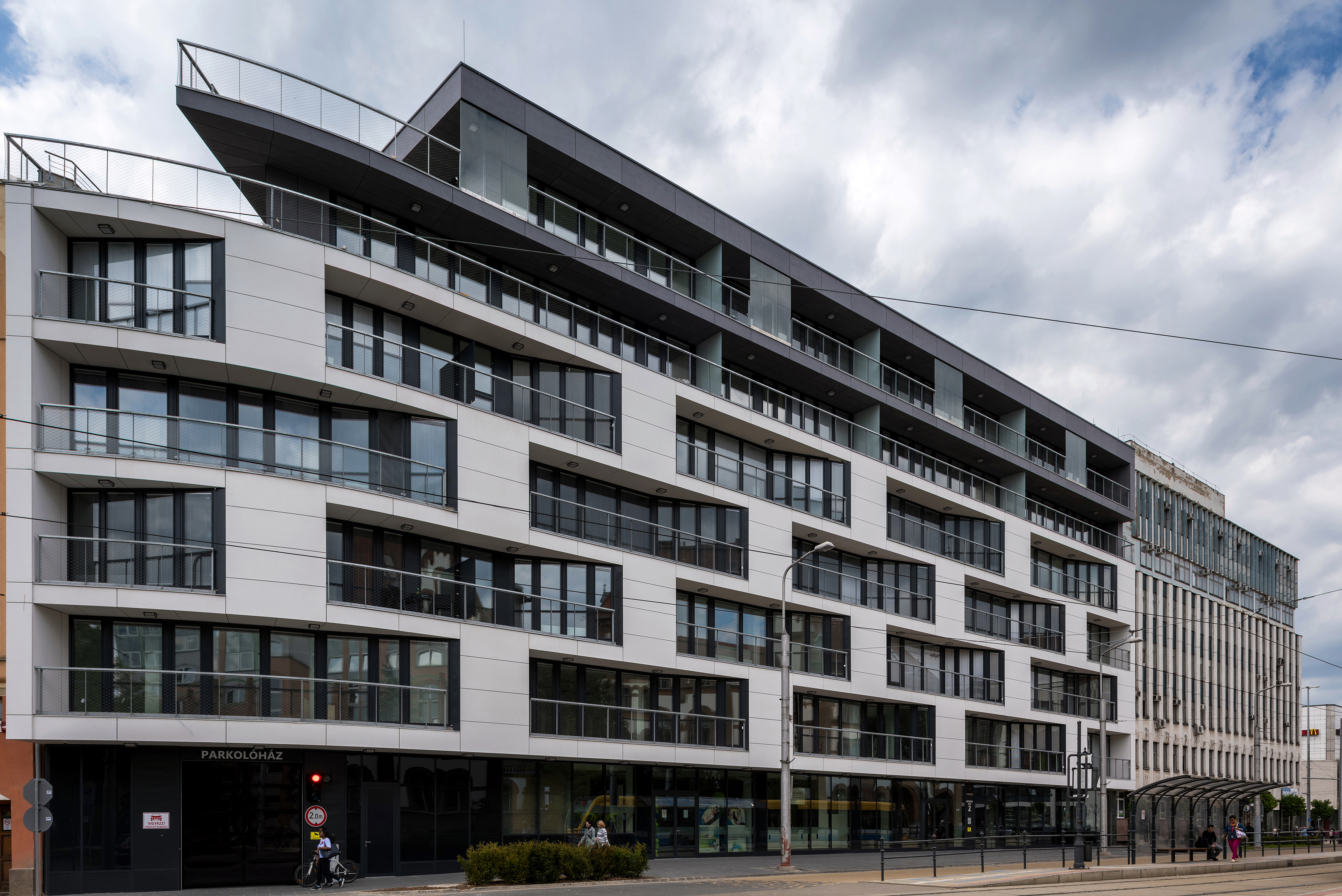 „A megosztott I. díjat érdemelt épületen az enyhén íves homlokzati felületen izgalmasan szalad végig a random homlokzati struktúra, aminek plasztikáját fokozzák a bebillentett üvegfelületek. Ezeken a felületeken különleges effektek, tükröződések jönnek létre. A random homlokzati szerkesztésből adódik, hogy a tervezők tudatosan vállalják az atektonikus homlokzati rendszert, amelyhez a szerelt homlokzati rendszer nagyszerűen illik. Az építészeti szándék és az anyaghasználat teljes egységben van. A magasságkülönbséget szellemesen két különböző színű homlokzati burkolattal oldja meg a tervező, mivel az épület két különböző magasságú szomszéd épület közé ékelődik. A fehér EQUITONE az alsó zónában, míg a sötét árnyalat az utolsó két szinten jelenik meg.” – méltatta az épületet a díjátadó estjén Kertész András Tibor DLA, Ybl-Miklós és Pro Architectura díjas építész, a CREATON South-East Europe Kft. által kiírt EQUITONE – Az anyag természete építész pályázat zsűri tagja.