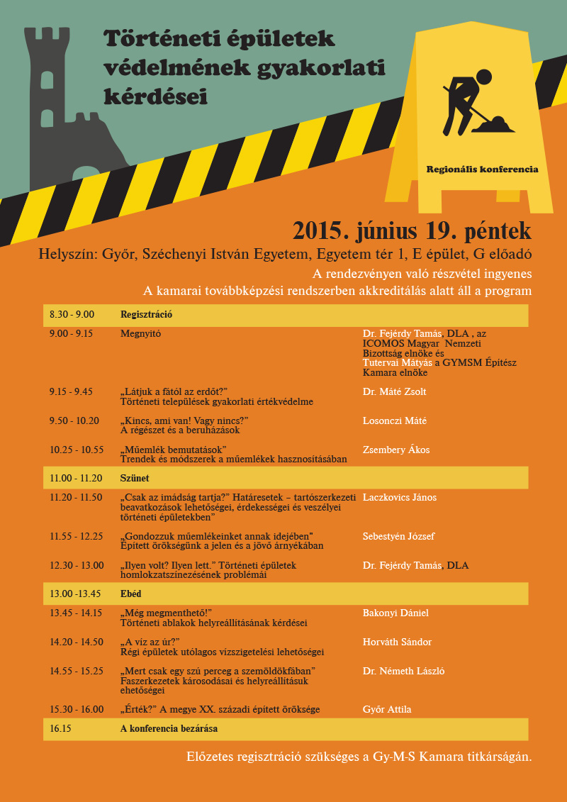 Kamaránk regionális konferenciát szervez "Történeti épületek védelmének gyakorlati kérdései" címmel, melyre, 2015. június 19-én Győrben a Széchenyi István Egyetem "E" épületében kerül sor. A részletes program levelünk mellékletében megtalálható!