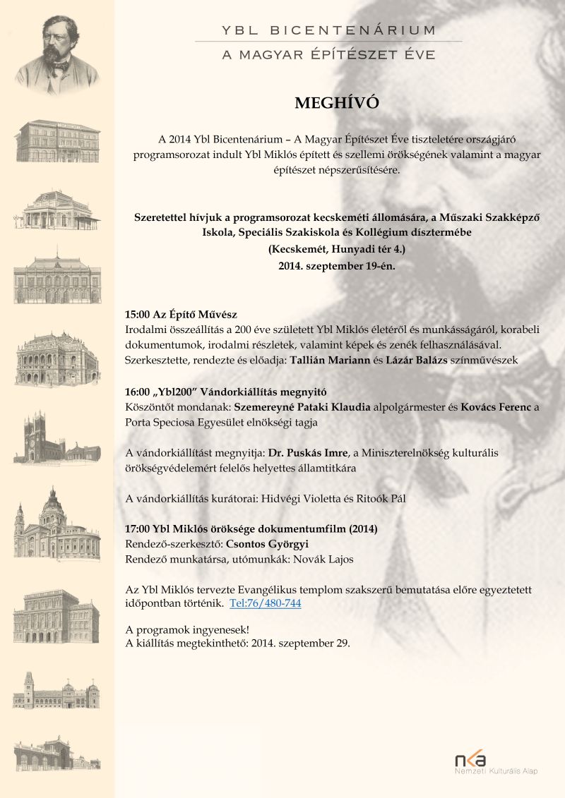 A 2014 Ybl Bicentenárium – A Magyar Építészet Éve tiszteletére országjáró programsorozat indult Ybl Miklós épített és szellemi örökségének valamint a magyar építészet népszerűsítésére.