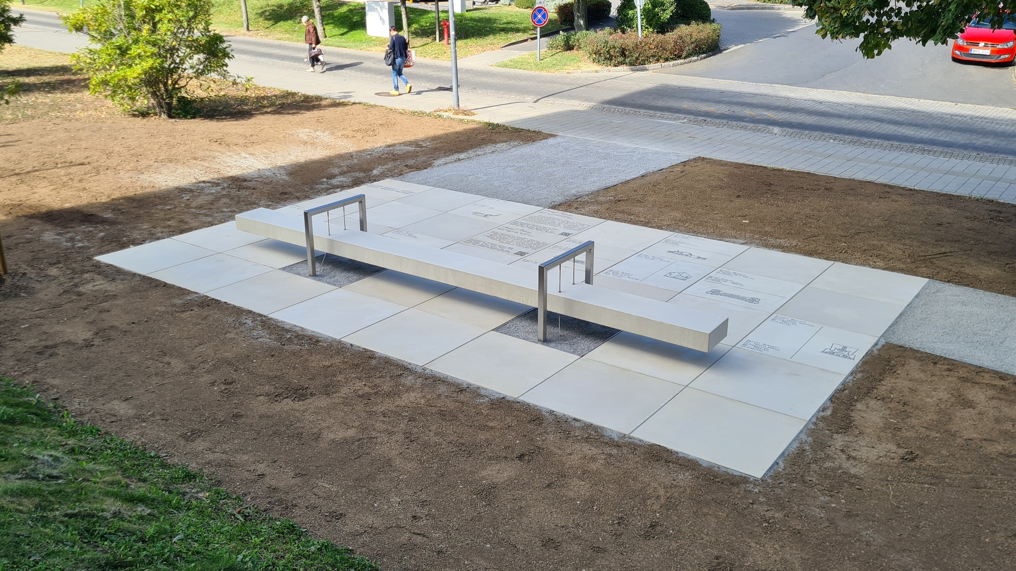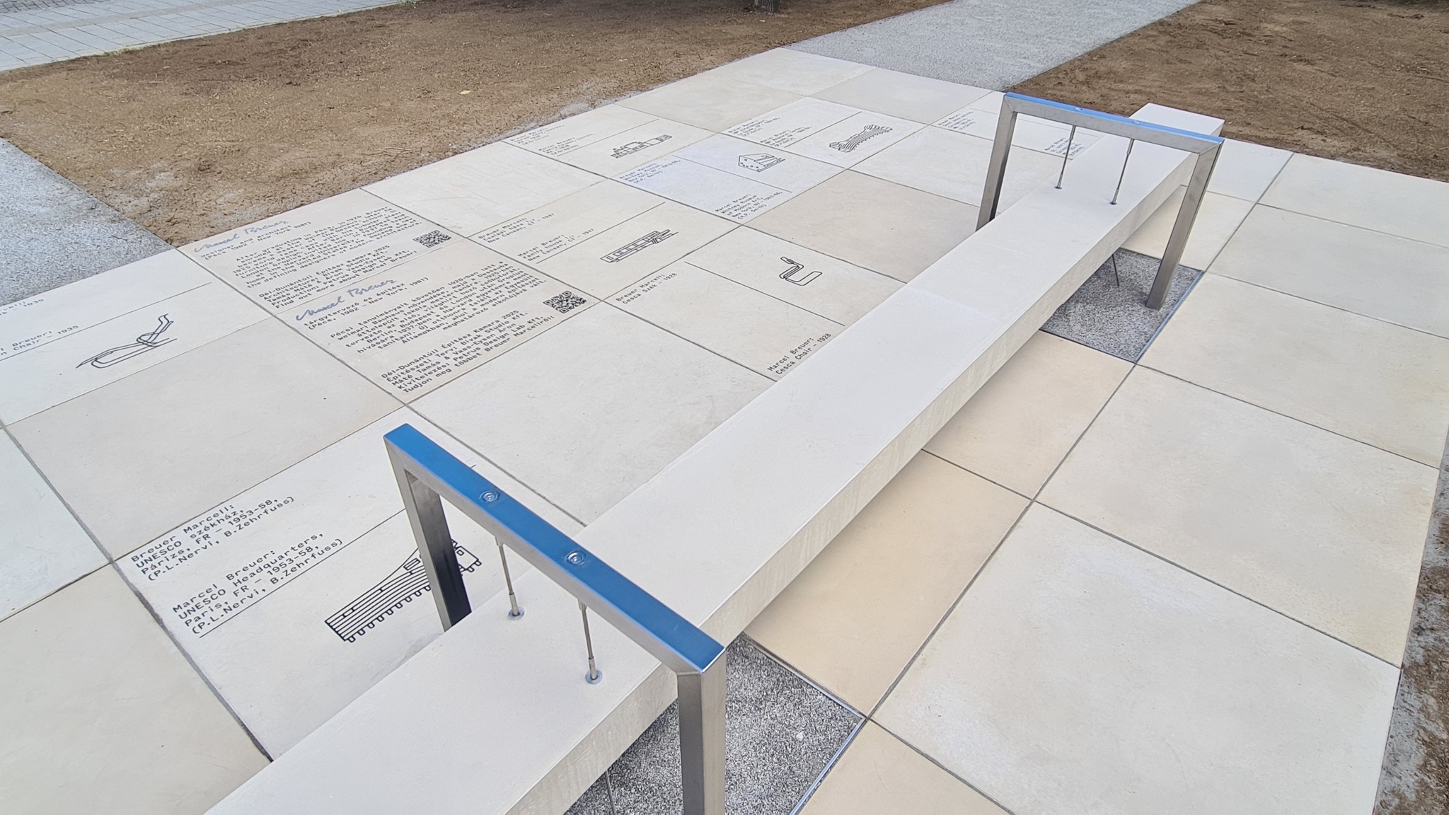 Próbáld ki az acél keretben lebegő beton padot, olvasd a betonba öntött életművet, és a QR kóddal megnyitható weboldalt. Ünnepeld velünk az Építőművészetet!