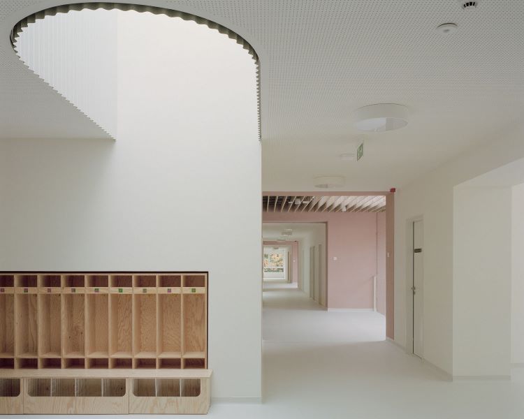 A megújult óvoda öncélú tervezői fordulatok, gegek, csacsogás nélkül, visszafogott magabiztossággal sugározza, hogy itt minden, de tényleg minden a gyerekekről szól. A tudatos funkcionalitás, ergonómia, akusztika, szín- és anyaghasználat, világítás, infografika, kiszolgáló rendszerek a szakági kompetenciákon túlmutatva, mélyen integráltan mind egy irányba mutatnak, és a feltűnő alapossággal átgondolt pedagógiai program kiszolgálását célozzák.