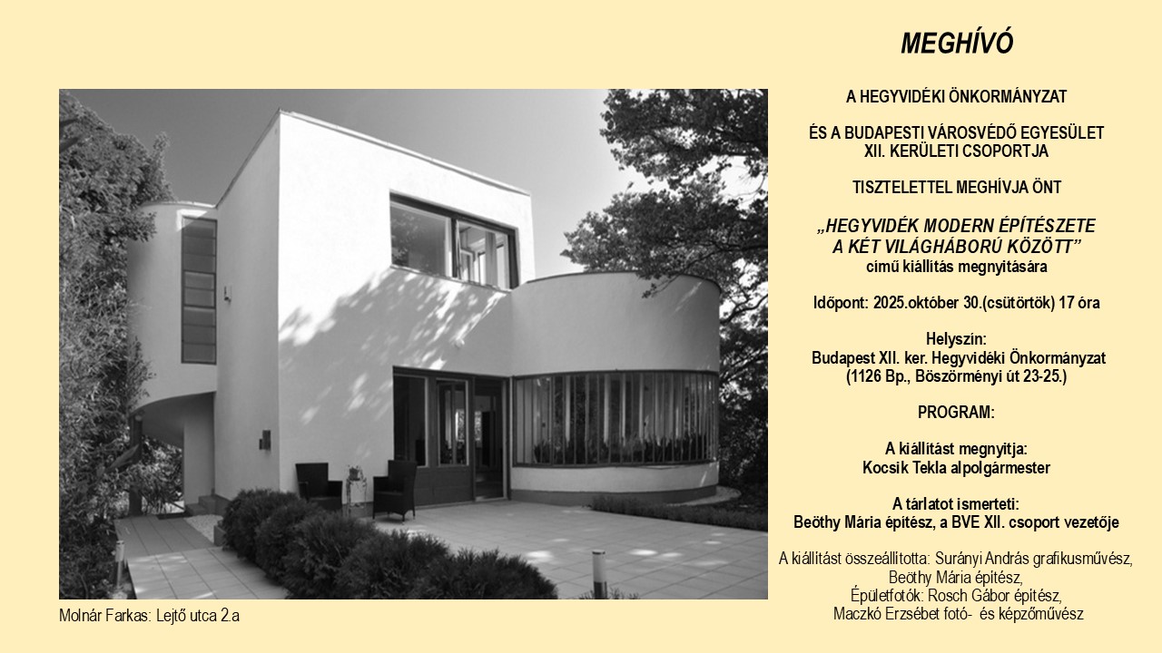 Szeretettel várjuk az érdeklődőket a Budapesti Városvédő Egyesület 12. kerületi csoportja nevében: Beöthy Mária építész