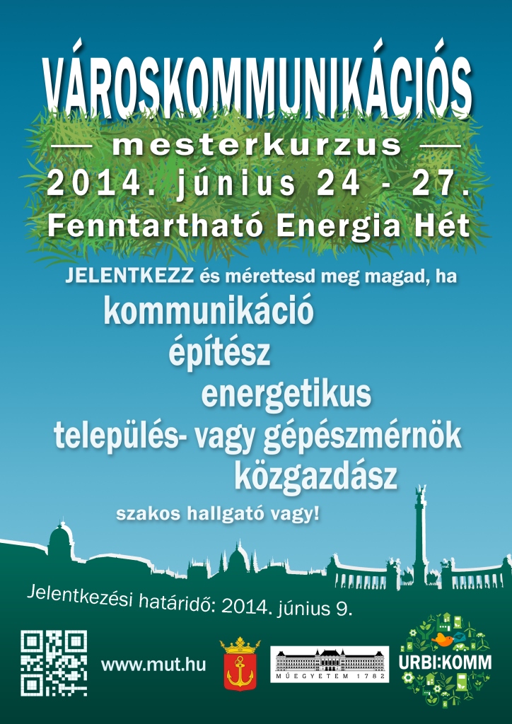 A Magyar Urbanisztikai Tudásközpont a Fenntartható Energia Hét (2014. június 24-27.) keretein belül Városkommunikációs Mesterkurzust szervez, amelyre fiatal építész/építőmérnök, közgazdász és kommunikáció szakos hallgatókból álló vegyes csapatok jelentkezését várjuk, feladatuknak pedig Újpest déli szegmenséből kiválasztott lakótelepi rész energiatudatos megújításához szükséges kommunikációs tervének elkészítését és annak prezentálását tűztük ki.