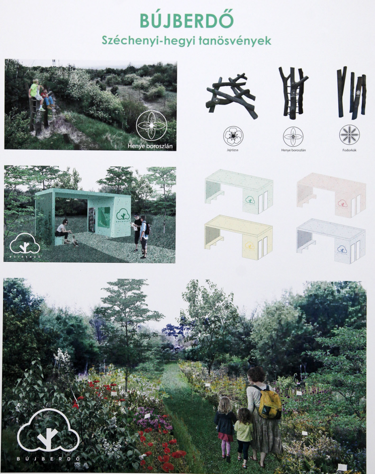 „Olyan koncepciót igyekeztünk kidolgozni, ami átfogja az egész területet. A meglévő ösvények felhasználásával négy túraútvonalat terveztünk, ezek mentén pecsételőpontokat, mini játszóhelyeket hoznánk létre” – mutatta be a győztes tervet az egyik alkotó, Arany Anett. Kitért rá, hogy a Széchenyi-hegyi tanösvények bejárását mobiltelefonos applikáció kifejlesztésével segítenék: a növényfelismerő funkcióval ellátott alkalmazással az elmélyült botanikai ismeretekkel nem rendelkezők is könnyedén felfedezhetnék maguknak a környék virágait.