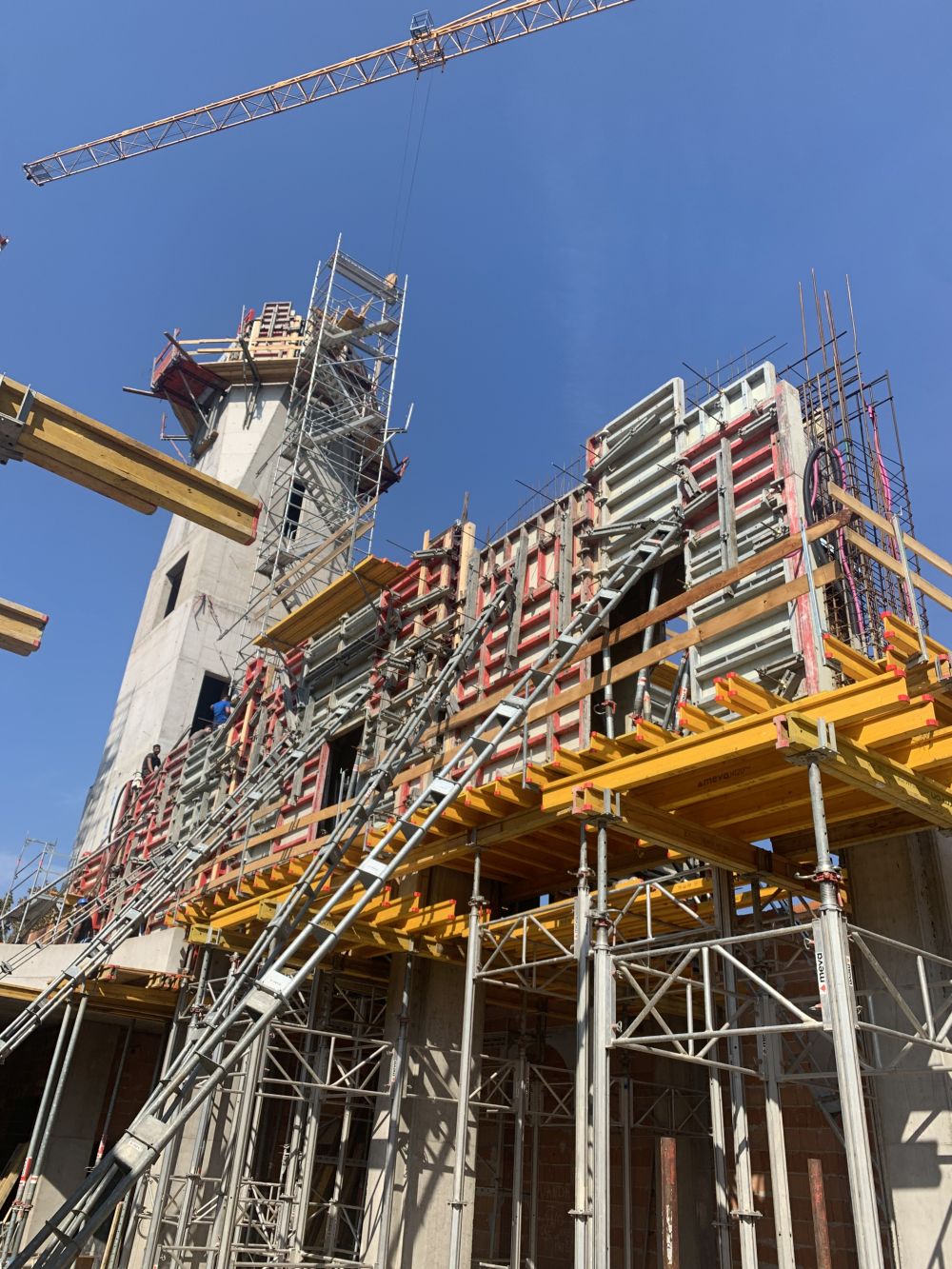 Nem csupán a háromdimenziós tervek segítették a szerkezet kivitelezését. A Meva más rendszermegoldásait is bevetették a szakemberek a munka során. Ilyen volt, a kúsztatott zsaluzási eljárás, amely a templomtornyok kialakításánál játszott kulcsszerepet. Ehhez a MEVA KAB 190-es speciális robosztus munkaállványt használták. A KAB minimális mennyiségű kiegészítővel a magasépítés szinte bármely helyzetében alkalmazható, gazdaságosan, a lehető legbiztonságosabb munkavégzést garantálva. A védőállványnak ennél a projektnél is jó hasznát vették.