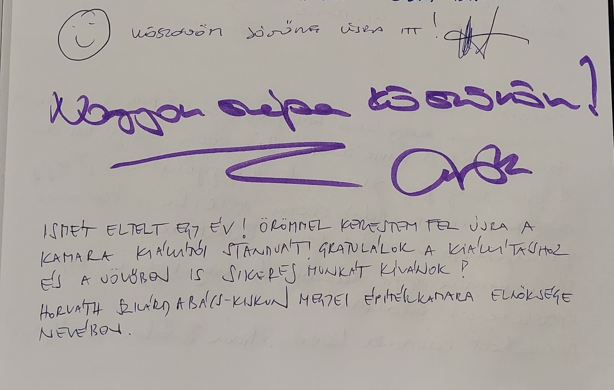 Újdonságként bevezettük a kamarai stand "vendégkönyvét", ahova nagyon sok szép és kedves gondolatot írtak a tagok, amelyet ezúton is nagyon köszönünk!