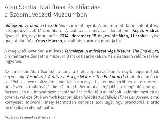 Alan Sonfist kiállítása és előadása a Szépművészeti Múzeumban