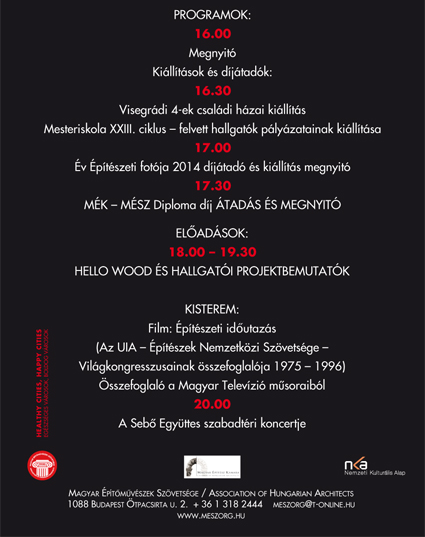 Időpont: 2014. október 6. Helyszín: Építészek Háza; 1088 Budapest, Ötpacsirta u. 2. Megnyitó: 16:00