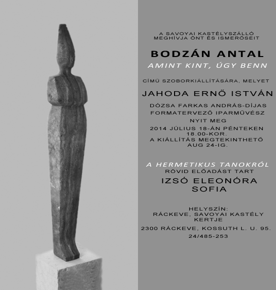 Időpont: 2014. július 18. 18:00 Helyszín: 2300 Ráckeve, Kossuth L. u. 95. (Savoyai kastély) A kiállítást Jahoda Ernő István nyitja meg.