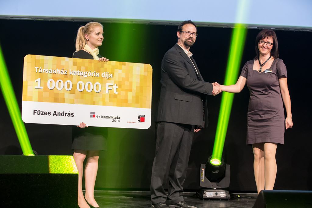 Az Év Homlokzata 2014 Pályázat társasház kategória díját a pályázó Füzes András építész Barina Anikótól, a Baumit Kft. vevőszolgálati vezetőjétől vette át október 9-én a Budapest Kongresszus Központban tartott díjátadó gálán.