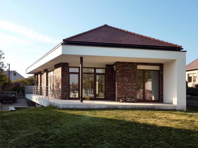 Vadász Bence és Vadász Balázs visegrádi családi házának terveit is a legjobbak közé választotta a zsűri. Ennek indoka, hogy a lejtős telekre elhelyezett családi ház funkcionális rendjét a bírálók képletszerűen tisztának ítélték. A terv alapján az építészek a Creaton Domino NUANCE palaszürke engóbozott modelljét javasolták a megbízónak.