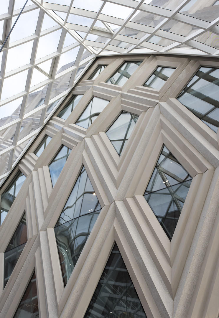 Ilyen innovatív üvegezéssel rendelkező épület a Leedsben található Victoria Gate épülete, amelynek diagrid mintájú homlokzatát Guardian SunGuard SuperNeutral (SN 70/35) üveg borítja. Az SN 70/35 üveg semleges kék színe tökéletes összhangot teremt a beton hideg tónusával, miközben az egyedi rendben és ritmusban elhelyezett üveglemezek természetes fénnyel árasztják el az árkádsort.