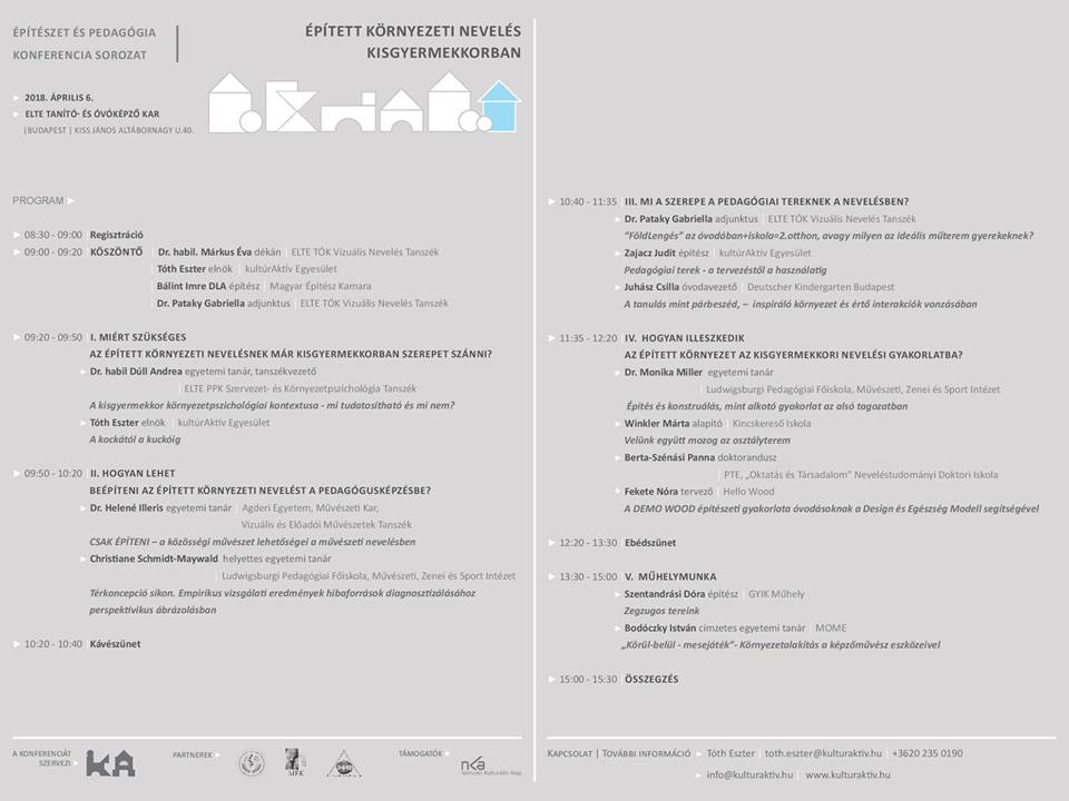 A konferencia a kultúrAktív, az ELTE Tanító- és Óvóképző Kar és a Bálványos Huba Vizuális Nevelési Kutató Műhely közös rendezvénye.