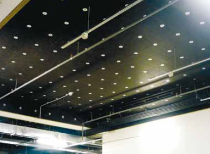 A Knauf Insulation több alternatívát is tud ajánlani az alulról hűlő födémek szigetelésére: a korábban több hírlevélben is bemutatott Heraklith® fagyapot fedőrétegű szigetelések mellett az üvegfátyol kasírozású anyagok is szerepet kaphatnak a fenti feladatok megoldásában. Előnyösen alkalmazhatók íves felületeknél, gépészeti vezetékekkel sűrűn fedett felületek szigetelésénél, ahol a meglévő vezetékek, szerelvények között, felett kell a szigetelést elhelyezni. Különösen előnyös lehet utólagos szigetelés beépítésénél, amikor minden meglévő vezetékhez alkalmazkodni kell. Anyagukból következően rugalmasak, könnyen méretre vághatók és beépíthetők. A választást azonban befolyásolhatja a kasírozás színe is. Míg korábban szinte csak fehér kasírozású anyagokat terveztek, építettek be ezen felületek szigetelésére, ma már egyre többször fordul elő a fekete kasírozású anyagok választása. A fekete szín több szempontból is szerencsés lehet: a használat során nem piszkolódik, a teremgarázsban megforduló számtalan gépkocsi kipufogógáza nem festi szürkére – viszonylag rövid idő alatt – az átadáskor még szép fehér felületet. Bizonyos felületek esetében, ahol pl. sok vezeték fut a szigetelés alatt, a fekete szín jó hátteret ad az alumínium színű gépészeti vezetékeknek. A szigetelés rögzítésére általában használt fém dűbelek katonás rendben sorakoznak a felületen, ami a fekete háttérrel együtt akár „dizájn-burkolat”-ként is figyelembe vehető a belső tér, a mennyezet tervezésekor. Olyan lehetőség ez, ami tulajdonképpen ingyen van; a szükséges szerkezeti rögzítő elemek igényes beépítés esetén felkínálják a dekoráció lehetőségét, amivel emelni lehet a felület esztétikai megjelenését. Használjuk ki ezt a lehetőséget, engedjük szabadjára a fantáziánkat! A kasír mögött többféle ásványgyapot szigetelőanyag „rejtőzhet”, amely akár λ=0,032 W/mK hővezetési tényezővel, mindenképpen A1 tűzvédelmi osztállyal, könnyű méretre szabhatósággal, ajándékként hangszigetelő tulajdonsággal járul hozzá a korszerű épületek kialakításához. A képeken a budapesti Várkert Bazár felújításakor kialakított teremgarázs mennyezetének szigetelése látható, ahol a fentebb említett szempontok is szerepet játszottak a beépített szigetelőanyag kiválasztásakor. A Nobasil® ADE ásványgyapot hővezetési tényezője λ=0,035 W/mK, a tervezéskori előírásoknak megfelelően 70 mm vastagságban került beépítésre. A rögzítést adó Fischer® DHM 90 fém szigetelésrögzítő és a DTM 80 fém szigetelőtányér mint megannyi spotlámpa „fénylik” a fekete alapfelületen, emelve így a teremgarázs mennyezetének esztétikai megjelenését. A szakszerű kivitelezés az Interép Kft. és a Menax Kft. munkájával valósult meg.