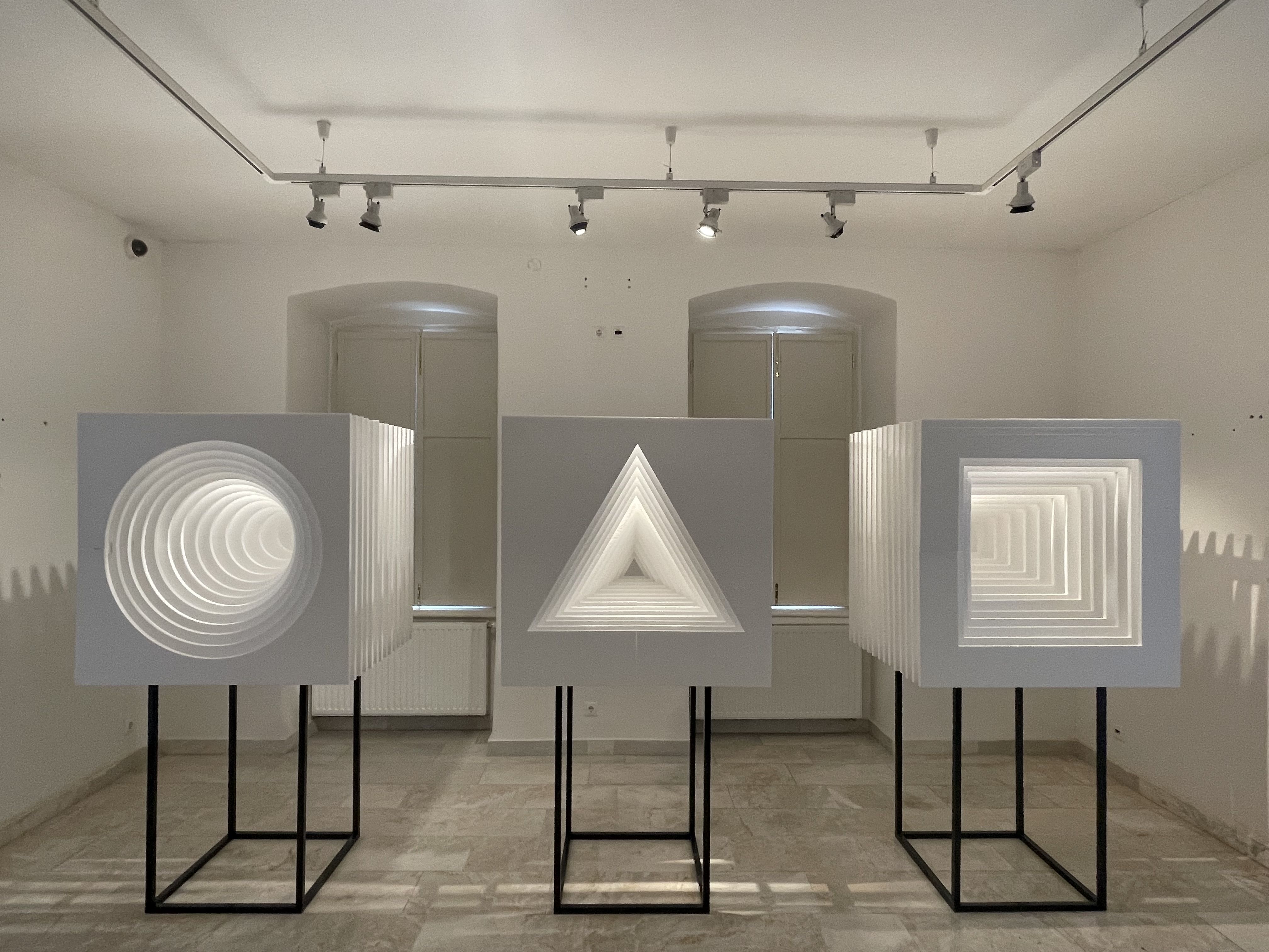 A kiállítás a Janus Pannonius Múzeum (JPM), valamint a MOME és a PTE MIK Építész Intézeteiben szervezett szakmai workshopok végeredményeit és a közös gondolkodás folyamatát is bemutatja. A JPM Vasarely-gyűjteményéhez tartozó, OP ARCH – Az op art művészet építészeti kapcsolódásai című egyetemközi projektkiállításon a hallgatók által készített terveket, működő installációkat, köztük egy beltéri fény-tér installációt, izgalmas maketteket, például egy Vasarely-üvegplasztikájának makettjét is láthatja a közönség. Az installáció három eleméhez 50 db 2 cm vastag Austrotherm AT-N200 polisztirol lapot használtak fel, a lapok közti rögzítést 4 cm vastag lemez darabok biztosították.