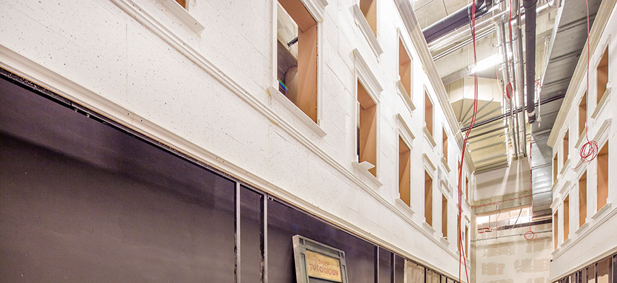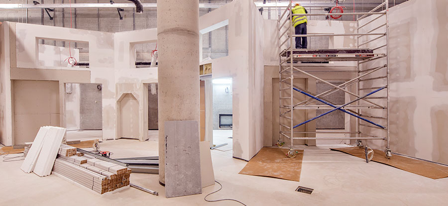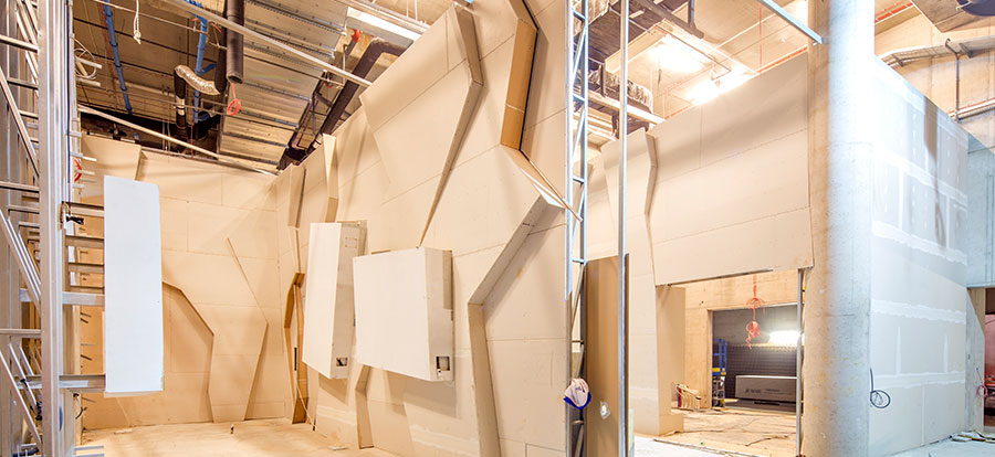 Helyenként 7 m magas falak rögzítése és hozzá a tárolók súlya, a hangszigetelés vagy akár a tűzvédelmi feladatok – ez csak néhány volt a számtalan különleges feltétel közül. Ezek ugyanis alaposan meghatározták például azt, hogy a kivitelezés során milyen gipszkarton megoldás használható, hogy a falak jól bírják az évi több százezer látogató jelentette a mechanikai terhelést. Zdzislaw Leszkowski, a Renova vállalat tulajdonosa, akinek vállalkozása a múzeum belső munkálatait végezte, úgy nyilatkozott, hogy ez a projekt egyértelműen a komoly szaktudást igényelt. A projekt követelményei, a látványos terek és a szokatlan gipszkarton alkalmazás feladta leckét.