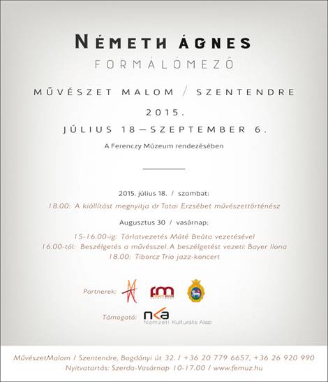 Kiállítás megtekinthető: 2015.07.18 - 2015.09.06
