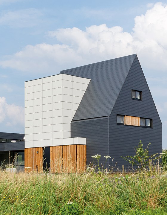 A tető és a homlokzat homogén egysége - ugyan évezredek óta tudatos jelenség – mégis a mai építészeti irányzatok esetén egyre gyakrabban használt eszköz. Az építőanyag gyártás csúcstechnológiájának eredménye a modern, építészeti trendet alkotó, természetes szálcement Eternit, illetve Cembrit pala.