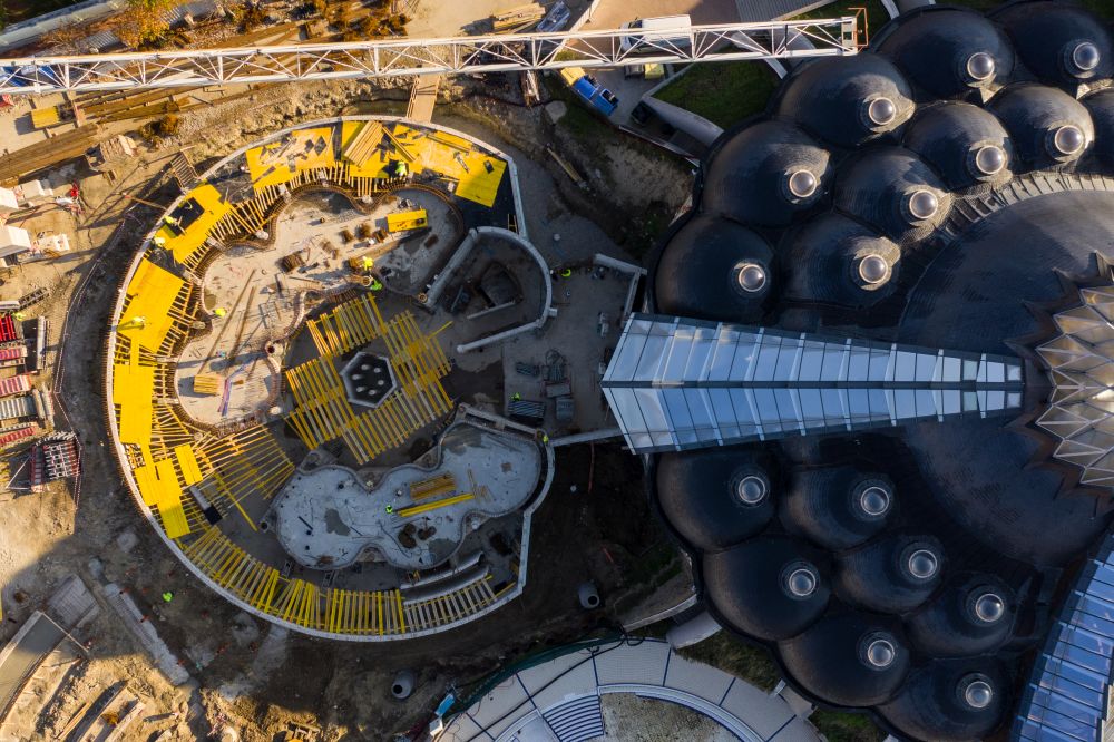 „A már elkészült ütemhez hasonlóan, az újonnan épülő részeket is döntően íves felületek jellemzik.” – mondta Oláh Zoltán a MEVA mérnöke, aki már az előző ütemben is szorosan a kivitelezővel együttműködve dolgozott a projekten. A falak a MEVA új fejlesztésű RADIUS zsaluzatával készülnek, amivel tökéletes íves betonfelületeket lehet létrehozni.” - tette hozzá a szakember.