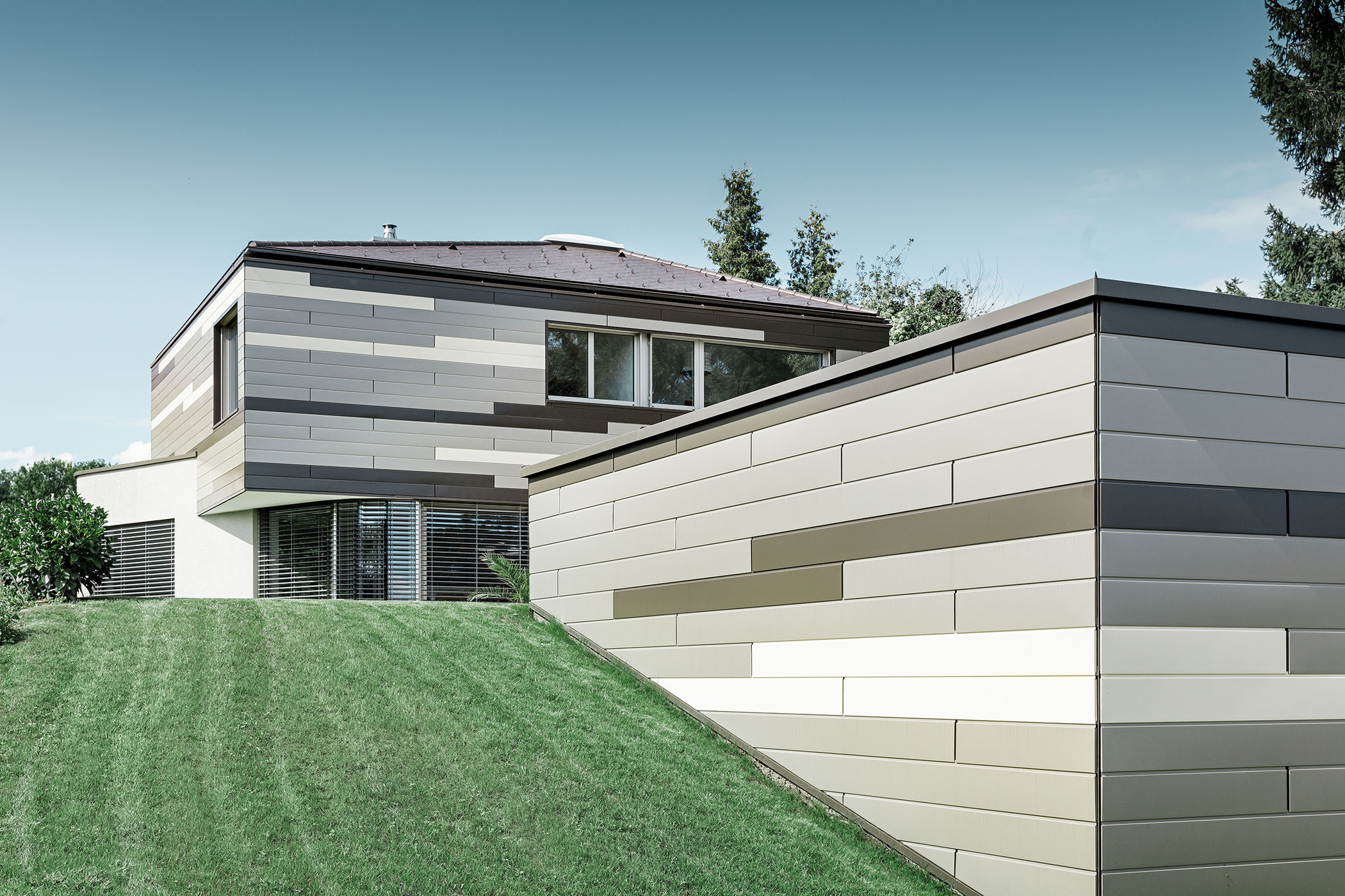 Peter Blineder, negyedik generációs építész, aki rugalmas, kreatív és független szakember hírében áll és minden esetben a megbízóival és a kivitelezővel személyesen és szorosan együttműködve tervez. Ebben a munkában a „csapat szerves része” minden alkalommal a megvalósításban döntő szerepet játszó kivitelező is. „A legjobb épületeim akkor jöttek létre, amikor a kivitelezővel azonos platformon, teljes harmóniában dolgoztunk. A jó építészet alapja a nyílt kommunikáció, amelyet a kreativitás támogat.” – mondta el Blineder a szakmák együttműködésének fontosságáról. A családi ház három színből álló domináns megjelenésű homlokzati terveit látva a kivitelezők először meglehetősen szkeptikusak voltak. Első ránézésre az antracit, bronz és elefántcsont színű PREFA Sidings vonalai rendezetlenek, de végül egy izgalmas és egyedi homlokzattá álltak össze.