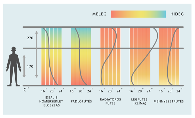 A korábban említett energiatakarékos hőközlés megvalósításához pedig nem pontszerű, hanem felületi hőforrásokra van szükség. Ez a megoldás olyan, minél kisebb részen árnyékolt területeken alakítható ki, mint például a födémek és falak. Így – a megfelelő kritériumokat betartva – a mennyezetfűtés lehet a leghatékonyabb megoldás, még annak ellenére is, hogy a hőközlés helye ellentmond a légáramlás szabályainak. Ettől függetlenül a fűtés felületi hatékonysága vitathatatlanul ezen a felületen a legnagyobb, így a klímafödém lehet a tökéletes választás.