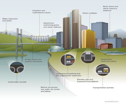 Előző cikkünkben a Krystol vízzáróságot biztosító rendszer új létesítmények kivitelezésénél történő alkalmazását mutattuk be. Az építőiparban az új létesítmények kivitelezése mellett jelentős arányú a karbantartási, vagy javítási-felújítási jellegű kivitelezés is. Nem is gondolnánk, de ez az arány az Egyesült Királyságban közel 40 %.