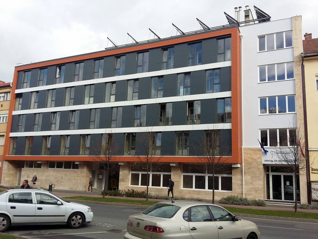 Az 1976-ban épült zalaegerszegi nővérszálló négyszintes, zártsorú beépítésű épülete meglehetősen rosszállapotú és elavult volt, energiahatékonysági szempontból is felújításra szorult. Soós Szabolcs Attila vezetésével, a felújítást végző Építész Manufaktúra csapata az épület homlokzatára kiselemes, fahatású CEDRAL CLICK homlokzatburkoló anyagot tervezett, amelyhez 2018 januárjától az EQUITONE üzletág szakemberei adják a műszaki támogatást. A CEDRAL homlokzati lapok egyesítik a homlokzatburkolatok állandó szépségét az építészet igényelt kreativitással, kiváló minőségű szálcementből készülnek. Nem csak azért döntöttek a termék mellett, mert hosszú élettartamú, könnyen szerelhető, és gyakorlatilag utólagos karbantartás nem igényel: az átalakítás az eredeti tömegalakítást, és építészeti szándékot úgy őrzi meg, hogy egy modern megjelenésű, a főutcához méltó színvonalú épületet hoz létre.