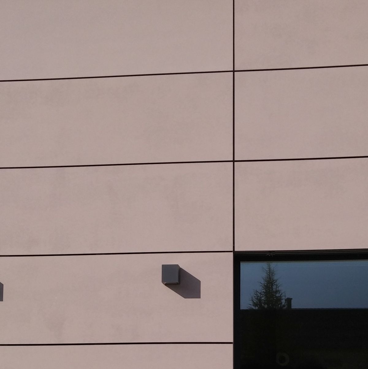 „Olyan anyagot kerestünk, ami a világos homlokzati vakolattal és a vízszintes bordázattal megjelenő deszkahatású burkolattal megfelelően kontrasztos megjelenést ad mind felületben, mind elemosztásban. A nagy táblaméretek, a távolról homogén, de közelről mégis kismértékben strukturált felület erre megfelelő volt.” – indokolta az anyagválasztást a Tóth Project Építésziroda vezető tervezője Tóth László.