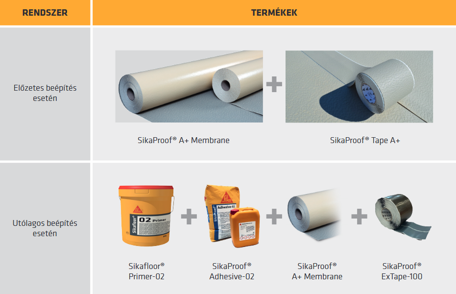 Az utólagos beépítési mód esetében ugyanez a SikaProof® A+ FPO szigetelő lemez SikaProof® Adhesive-02 ragasztóval utólag is felragasztható az elkészült szerkezetre. A rendszer nagy előnye tehát, hogy a két beépítési módnál a SikaProof® A+ FPO lemez ugyanaz, csupán a felületfolytonosítást biztosító szalagok különböznek, mivel a szigetelő lemez ellenkező oldalán kerülnek elhelyezésre. Amennyiben az építési technológia úgy kívánja, egy épületnél akár mindkét módszer alkalmazható, ezáltal biztosítva a gazdaságos anyagfelhasználást.