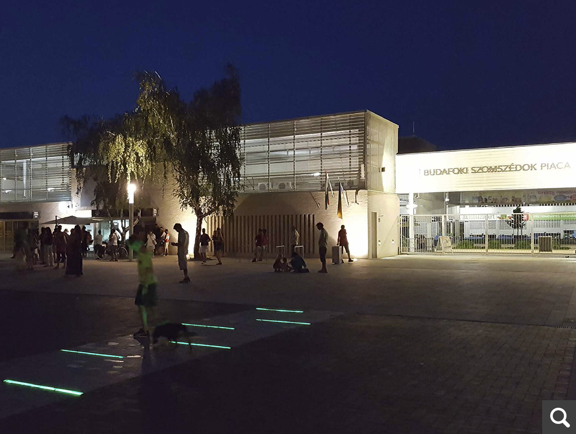 Budapest XXII. kerületi Önkormányzata egy új építésű, a városképhez illeszkedő piac és hozzá kapcsolódó közösségi tér kialakítását tervezte megvalósítani. A feladatot kimagasló minőségben oldotta meg a Kertész András DLA építész tervező által vezetett Avant-Garde Építész Stúdió Kft. A funkció nem csupán egy piactér, de egy társadalmi szempontból is fontos városi találkozó helyszín. Hagyományokból építkező, de korszerű formálású épülettömeg jött létre az egymás mellé sorolt, eltérő magasságú kubusokból. A piac mellett új parkolóhelyek is létesültek, valamint nagy hangsúlyt helyeztek a zöld megoldások alkalmazására.