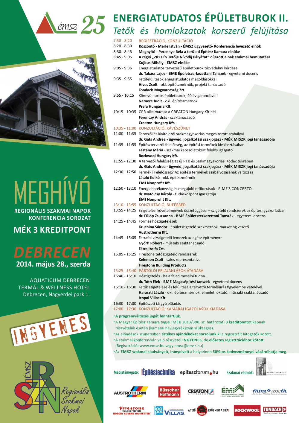 Regionális Szakmai Napok Konferencia Sorozat: Energiatudatos Épületburok II. - Tetők és homlokzatok korszerű felújítása