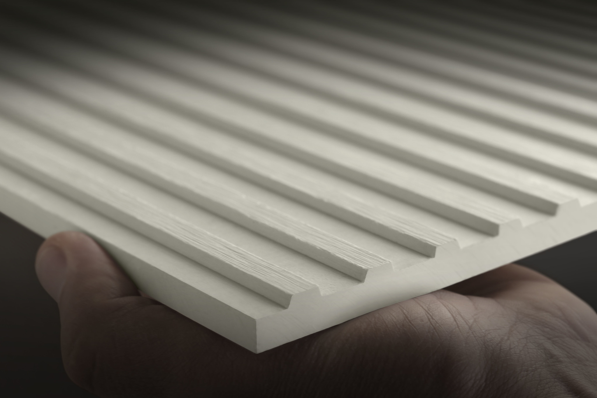 Az anyag-, és színvilágában a [tectiva] lapok tapintható nyers felületét követve, de a kétdimenziós helyett háromdimenziós, finom, bordás felületet ad, amely a homlokzaton, az aktuális fényviszonyok hatására reflektálva kezd dinamikus fény-árnyék játékba.