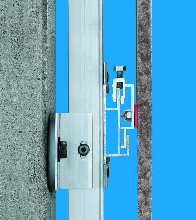 A dübelek elhelyezését követően a homlokzati lapok egy speciális, a rendszer számára fejlesztett Fischer tartószerkezetre kerülnek. A függőleges profilokra keresztirányban elhelyezett pozicionáló sínek rögzülnek, amelyekre akaszthatók és finoman pozícionálhatók a szálcement lapok.